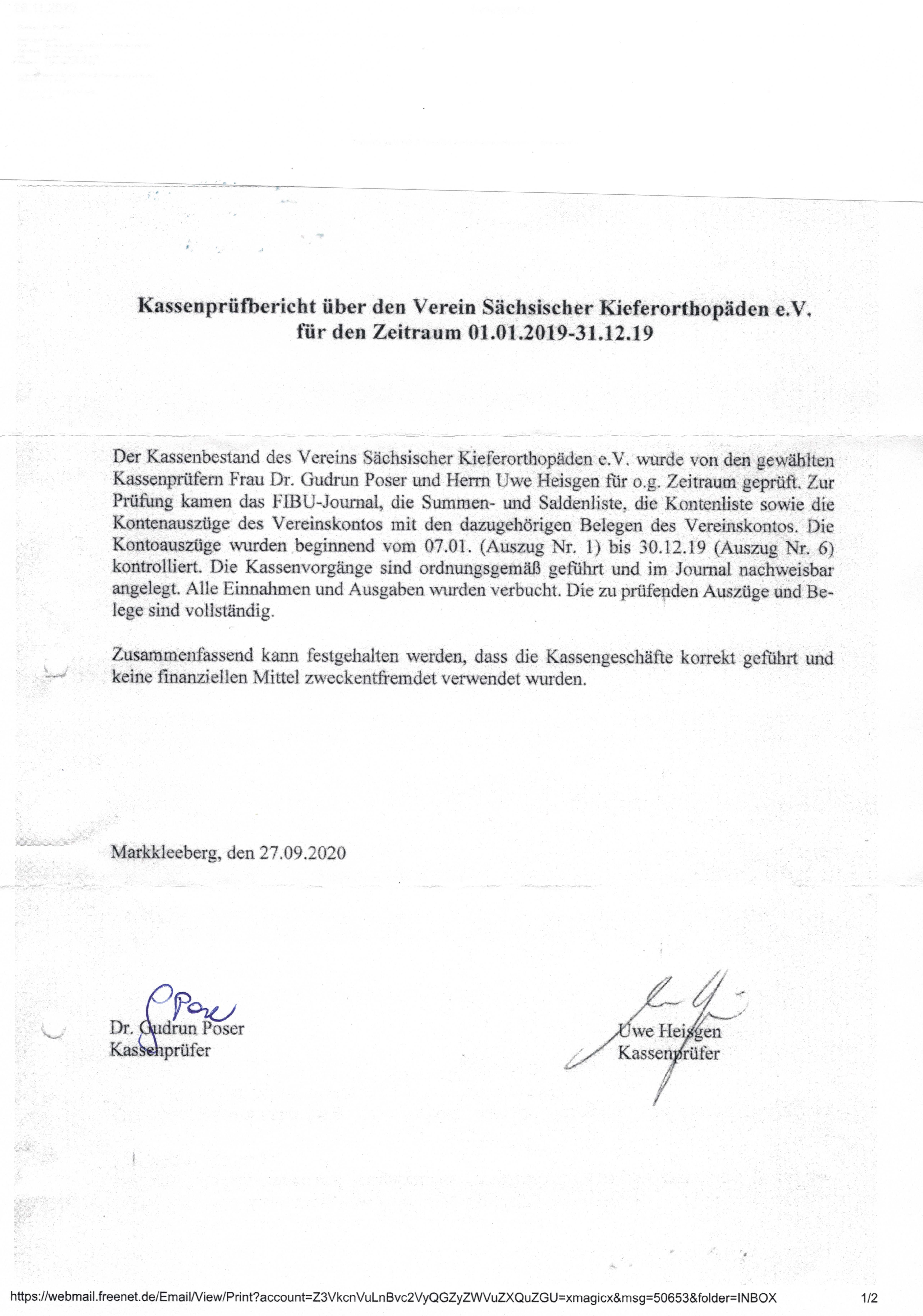 Als Anlagen können Sie den Kassenbericht des Haushaltsjahres 2019 , den Frau DS Christine Jacoby vorlegte und den Kassenprüfbericht 2019, der von den Kassenprüfern Frau Dr. Poser und Herrn Heisgen verfasst wurde, sowie den Haushaltsplan 2021 einsehen.